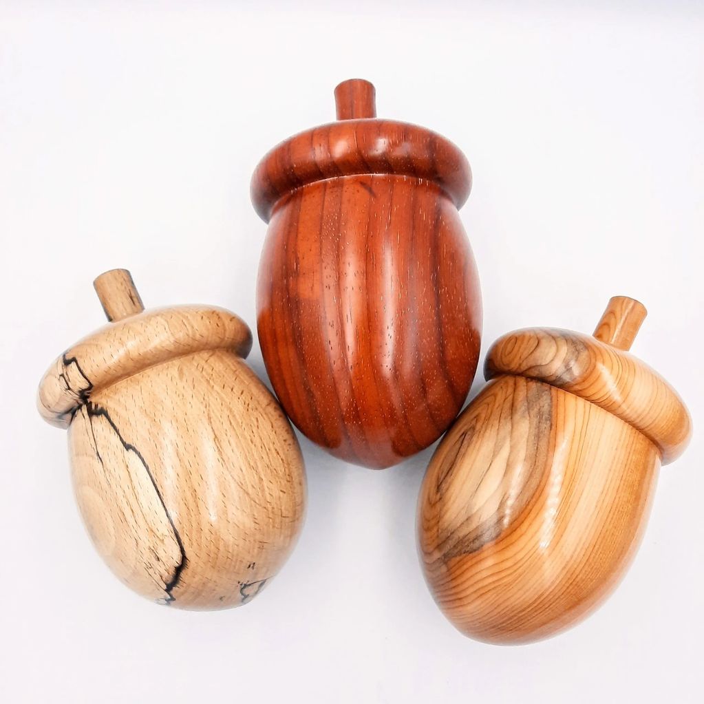 Trio of giant acorns - Spalted Beech, Padauk, Yew